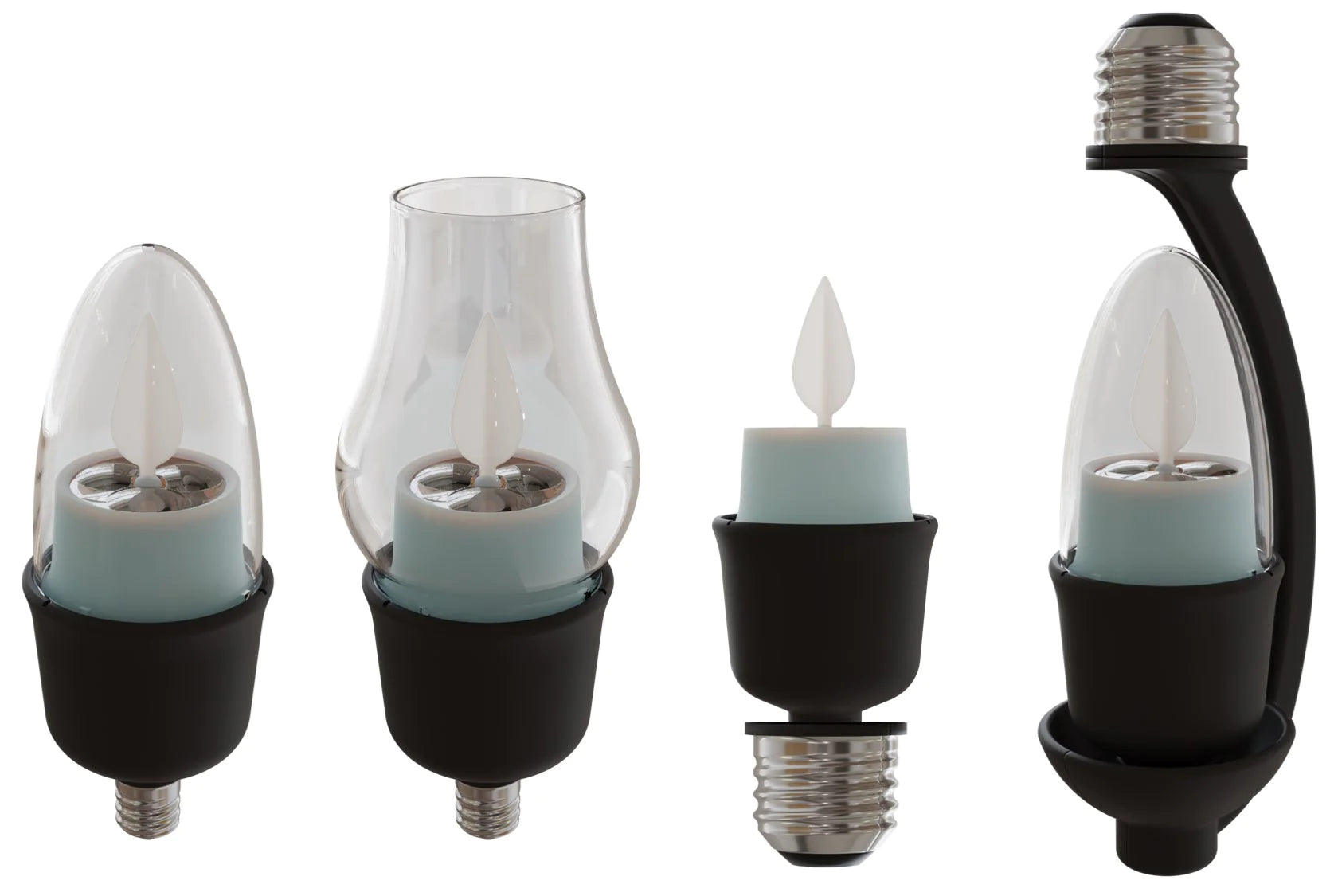 Multiple cover options and different socket adapters + converters allow you to put Velaflame in almost any style of fixture: chandeliers, lamps, sconces, outdoor porch lights, wall outlets, and more.
